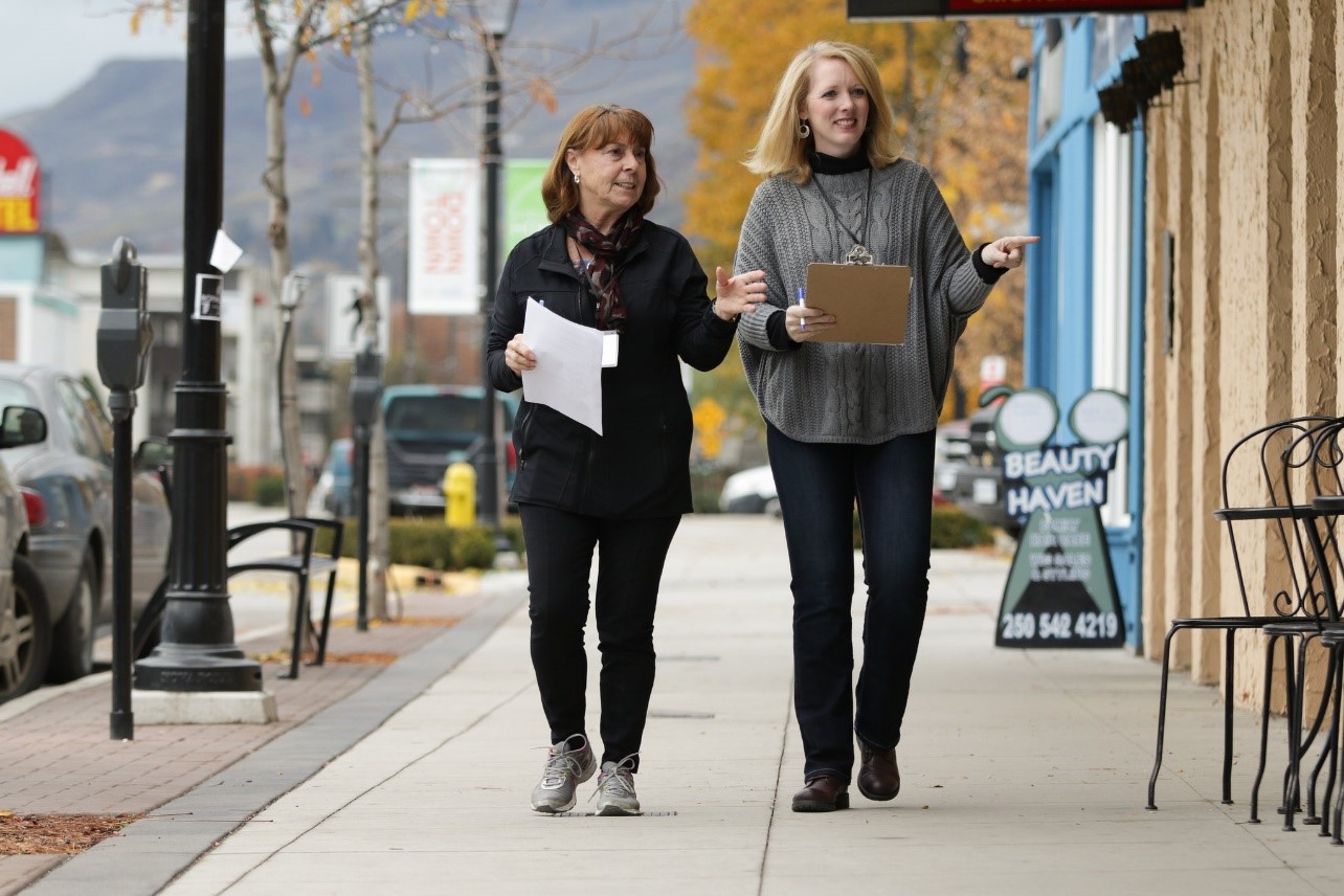 Above: Catherine Lord, (Former) Councillor, City of Vernon, and Leigha Horsfield, Executive Director, Community Futures North Okanagan, participate in Business Walks 2016.