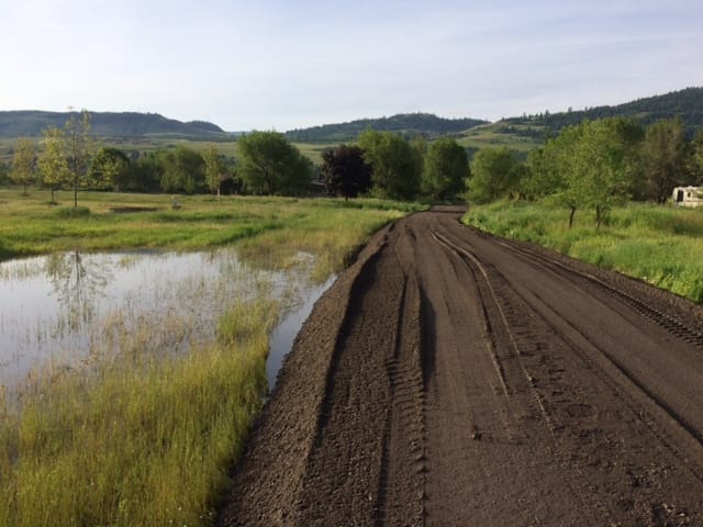 Photo: The City of Vernon has added approximately 30 centimetres of berm material to Cummins Road as temporary flood control.