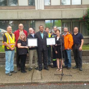 The City of Vernon has been awarded the Certificate of Recognition (COR) and $61,052.80 in incentives following a successful 2015 audit by the BC Municipal Safety Association (BCMSA) and WorkSafe BC (WSBC). This is the fifth year in a row the City has received the recognition, and over the course of that time has received $214,143 in incentives for maintaining COR status. Incentive money is used to promote the continuous improvement of worker health and safety, and City of Vernon compliance with WSBC regulation.