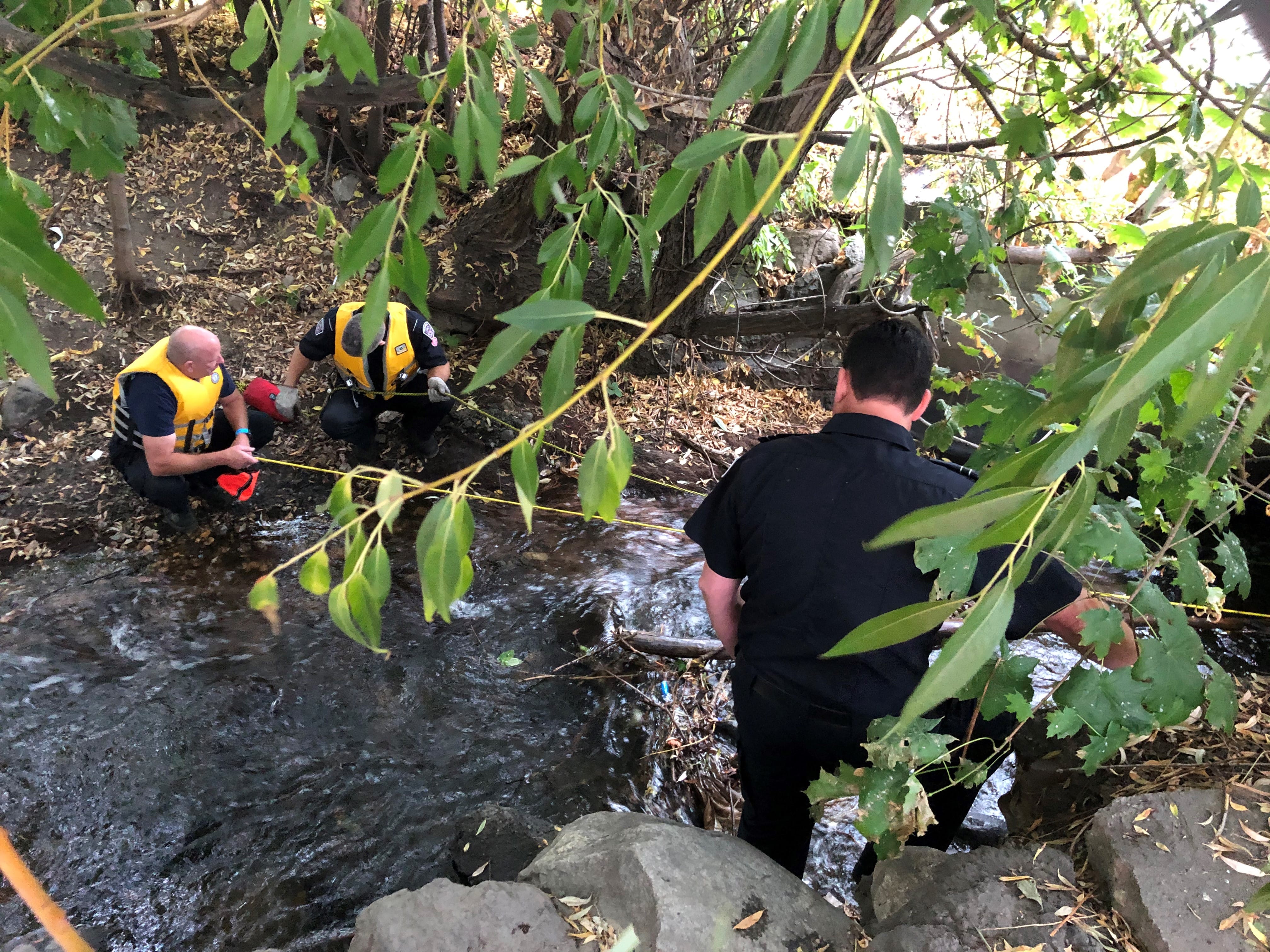 Firefighters worked with members of the RCMP, City of Vernon Utilities, Bylaw Compliance and BC Ambulance Service to close the area to traffic and survey the creek and storm sewer system underground.