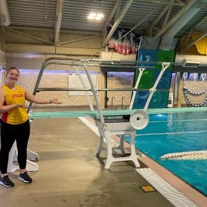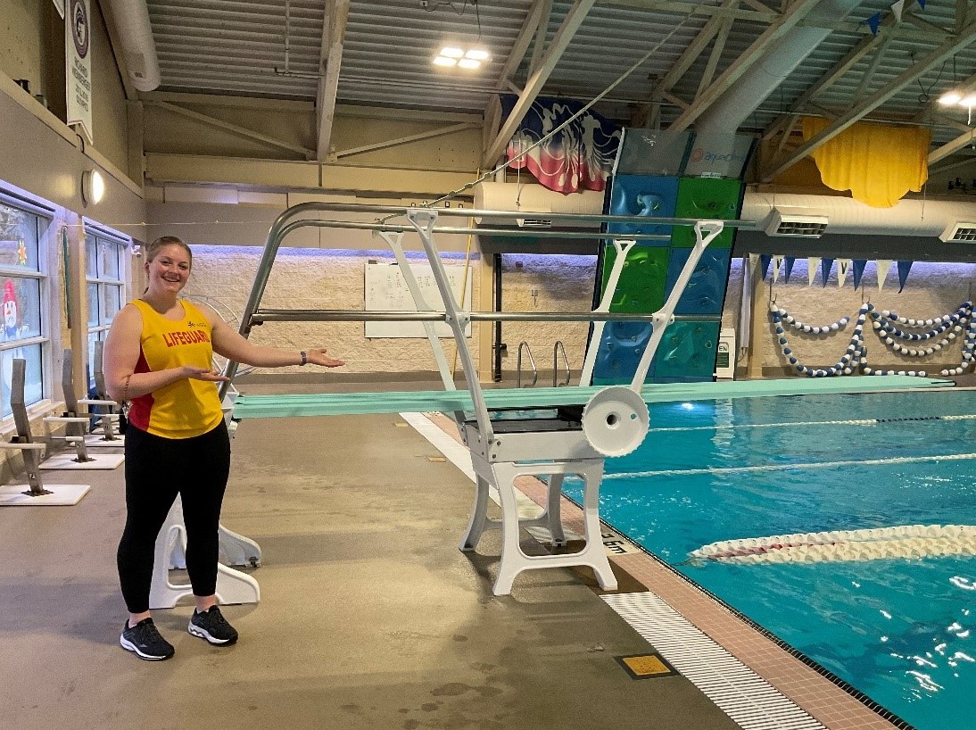 Photo above: Lifeguard Chantal Wong stands with the newly installed diving board at the Vernon Aquatic Centre.