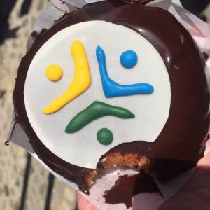 Mayor Akbal Mund sampled a celebratory tourism donut from Ratio Coffee and Pastry today to kick off the tourist season and to show his support for National Tourism Week, May 27 to June 2, 2018.