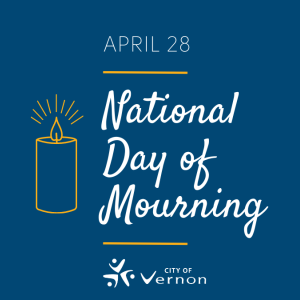 The National Day of Mourning was recognized with a small ceremony in front of Vernon City Hall Thursday morning. The ceremony included comments from representatives of the Government of Canada, Province of British Columbia, City of Vernon, WorkSafeBC, CUPE Local 626, Vernon Fire Rescue Services, and the Vernon North Okanagan RCMP.