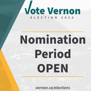 If you are interested in running for office in Vernon, but have not picked up a nomination package yet, they are still available for pick-up at City Hall (3400 30th Street) or for download on the City’s website at www.vernon.ca/elections.
