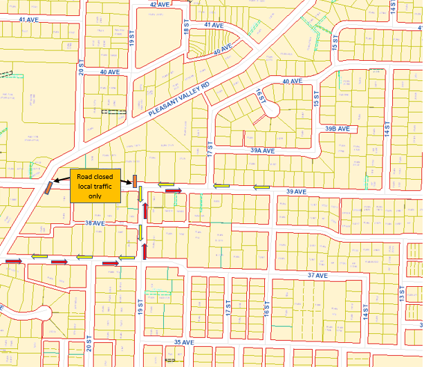 The City would like to advise residents a partial road closure will be required for a portion of 39th Avenue next week, for the installation of utility services.