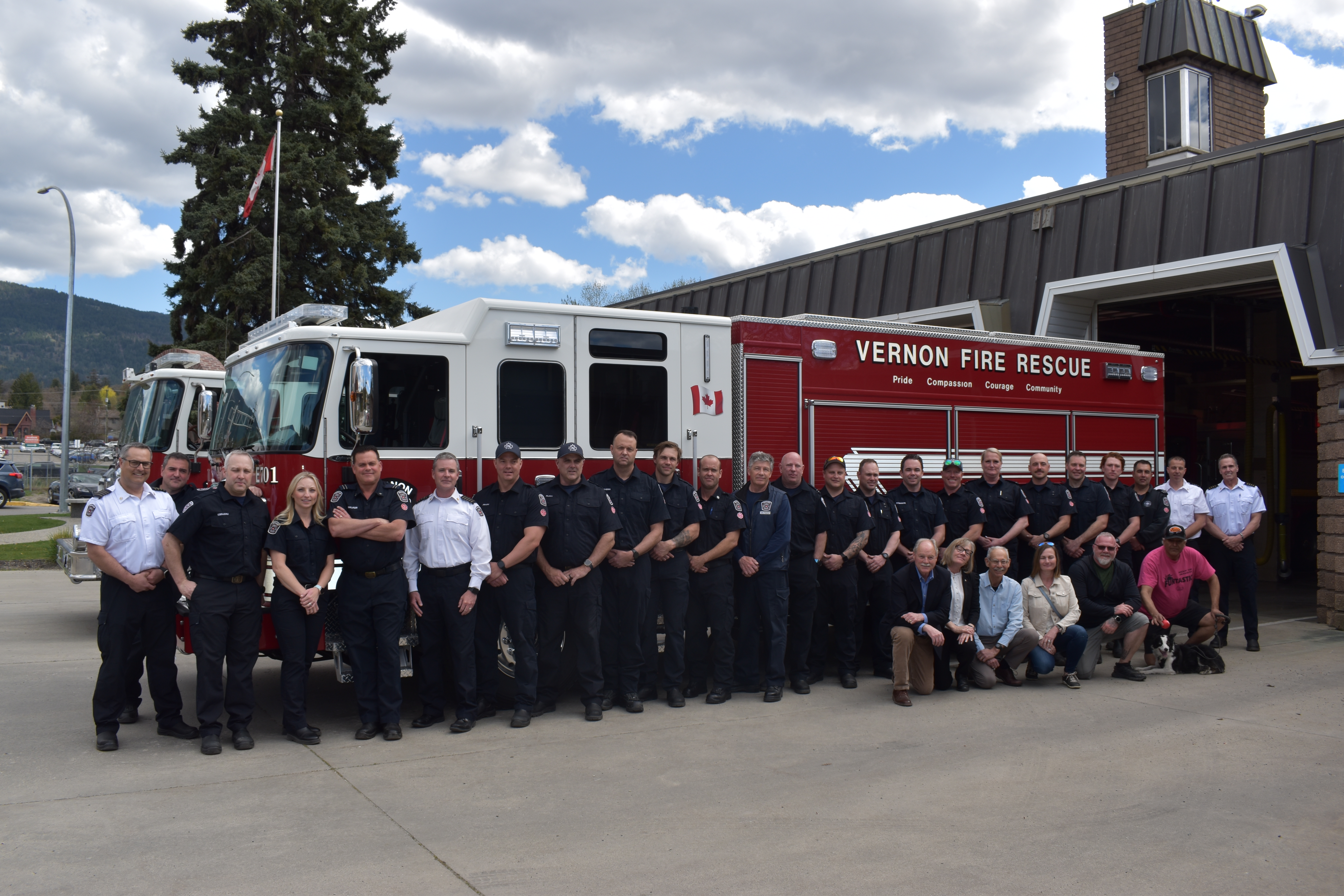 Photo: Members of Vernon Fire Rescue Services (VFRS) along with Mayor and Council