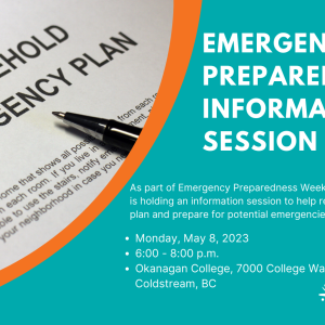 To kick off Emergency Preparedness Week, this Monday (May 8) the City of Vernon is holding an information session to help residents identify, mitigate and prepare for potential emergencies.
