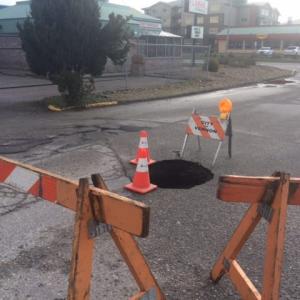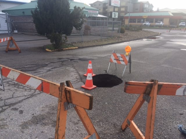 City crews are responding to a small sink hole that appeared over the long weekend on 42 Avenue. Currently, 42 Avenue from 33 Street to Highway 97 is closed to while repairs are completed.