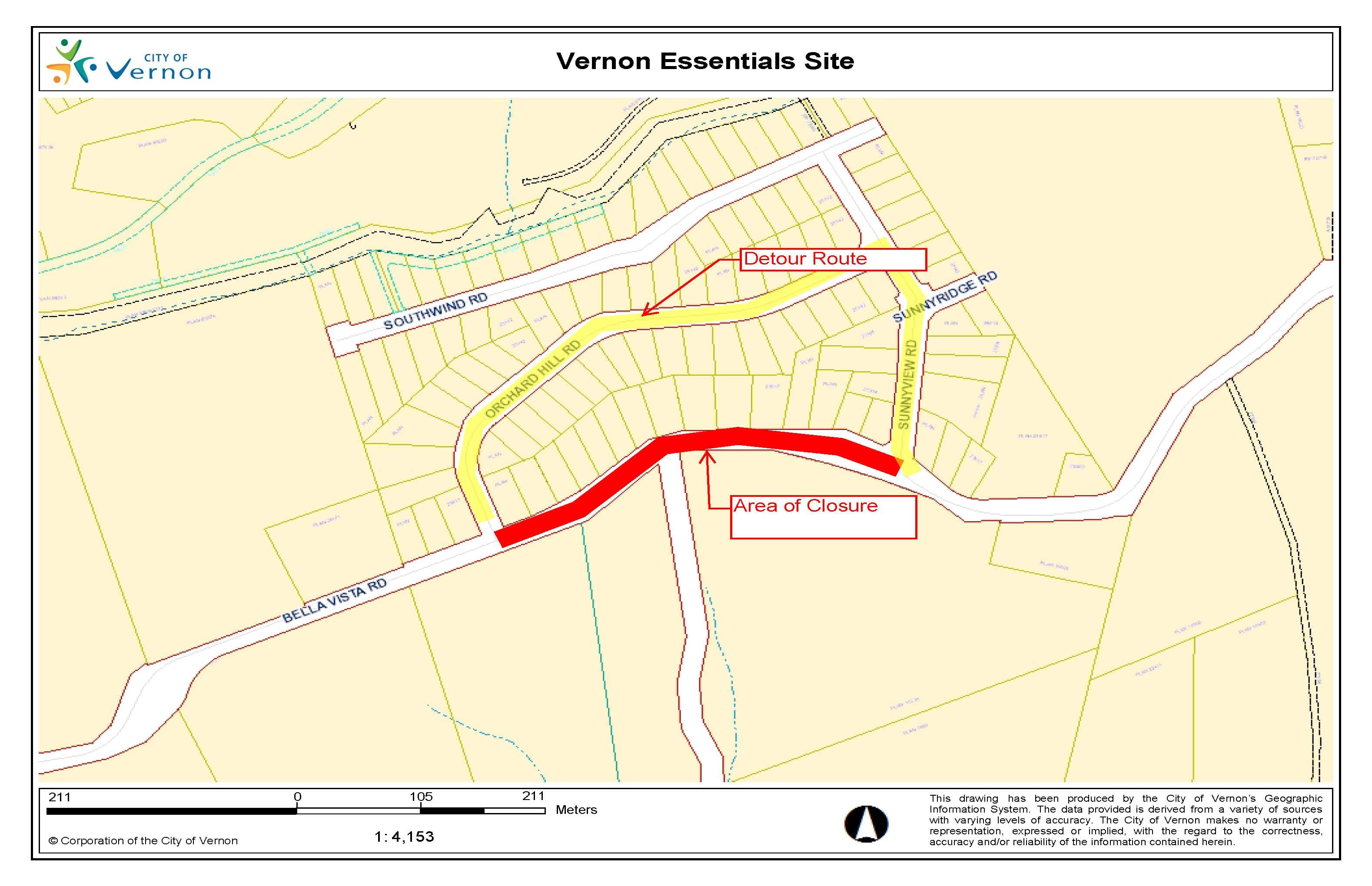 The City of Vernon will be completing sewer construction in Bella Vista Road between Sunnyview Road and Orchard Hill Road starting August 7 and continuing for several weeks. The work is part of the Okanagan Landing Sewer Extension project that started late last year.