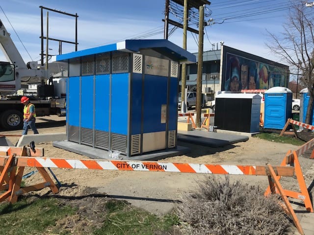 The first of the three units was installed at the corner of 30 Avenue and 35 Street last October. The final unit is expected to be installed next week at the bus terminus, at which time the portable washrooms and a temporary handwashing station will be removed from the site.