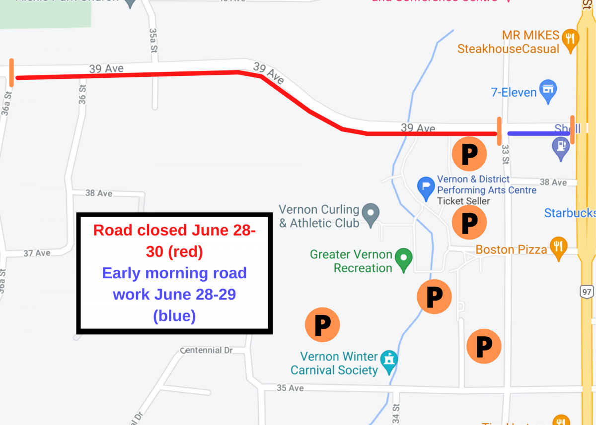 “The Vernon Aquatic Centre is currently closed for annual maintenance, so there is ample parking available around the Recreation Centre complex,” said Christy Poirier, Manager, Communications and Grants. “The temporary road closure will not have any impact on vaccination attendees’ appointments.”