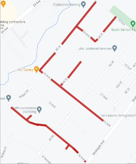 Contractors working for the City of Vernon will be performing an asphalt surface treatment, known as micro-surfacing, to specified roads as detailed on the map below.