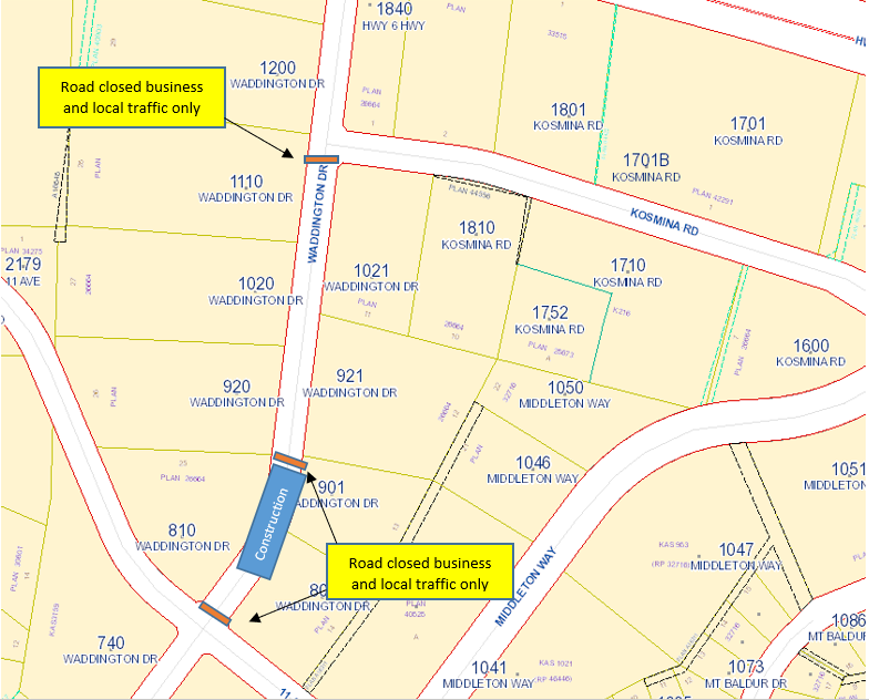 Starting at 6:00 a.m. on Thursday (December 9), Waddington Drive between 11th Avenue and Kosmina Road will be accessible to businesses and local traffic only. The work is expected to be complete by 6:00 p.m. the following day. Please note, these timelines may change if emergencies arise.