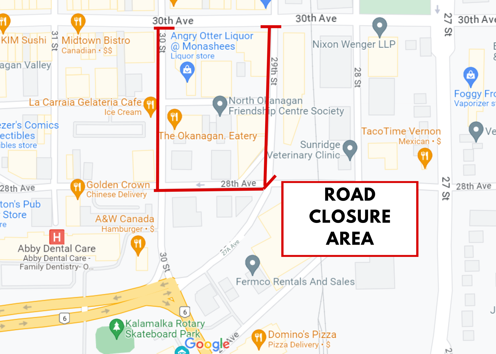 Due to ongoing work in the area, 30th Street will remain closed overnight between 28th and 30th Avenues and will be reopened tomorrow morning. However, 29th Avenue is expected to be opened late this evening.