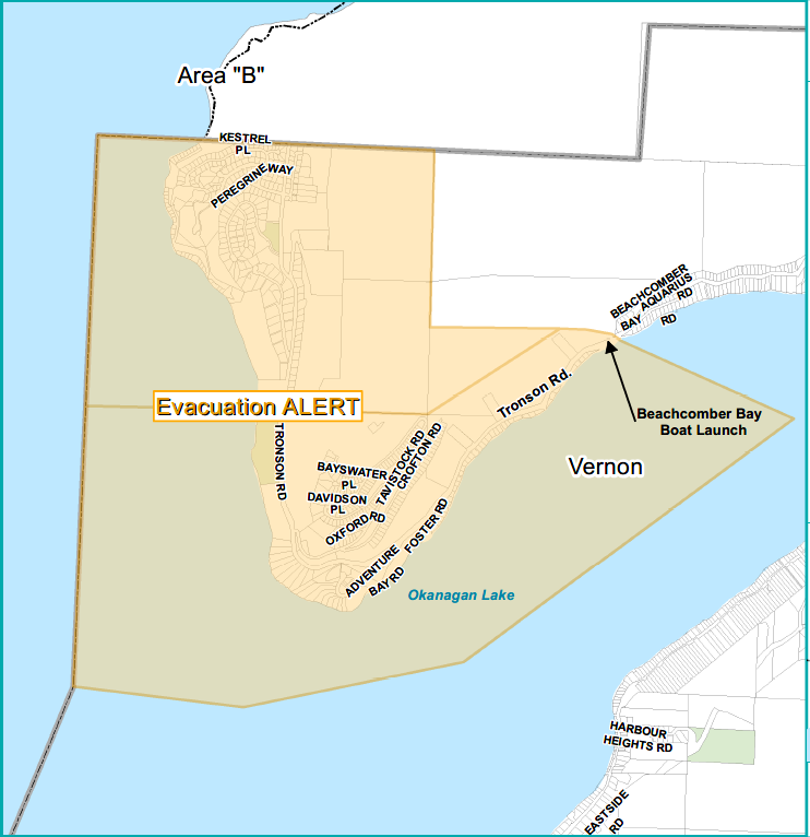 An Evacuation ALERT remains in place for the following areas of Vernon (see map below):
