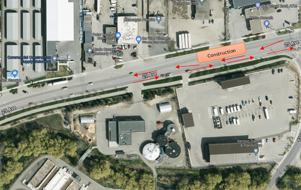 Motorists traveling along 25th Avenue may experience minor traffic delays while crews upgrade utilities in the area next week. Starting as early as Tuesday, September 27, crews will begin working on the City’s sewer system on a portion of 25th Avenue, adjacent to the Vernon Water Reclamation Centre.