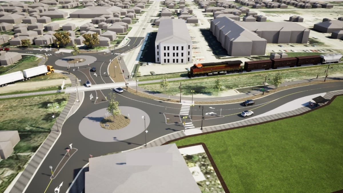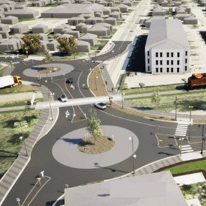 Below is a bird’s eye view rendering of the new intersection at 39th Avenue with the double roundabout.