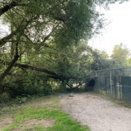 A tree has fallen on the pathway, cutting off access to the site.
