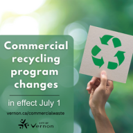 The City of Vernon is reminding businesses that are currently enrolled in the City’s Commercial Recycling program of an upcoming change to the collection schedule. This program is mandatory to all Commercial and Industrial properties within City limits (excluding Blue Jay, Predator Ridge, Foothills…