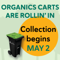 Vernon’s new residential curbside organics collection program is ready to begin next week. Crews are delivering the last of the green-topped collection carts to residences today, just in time for the new waste collection service to start.